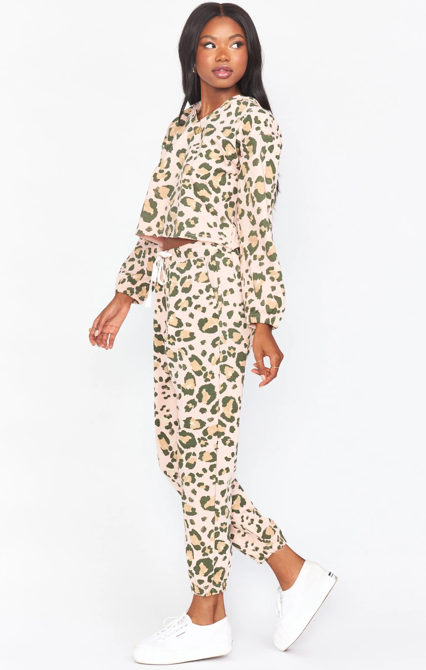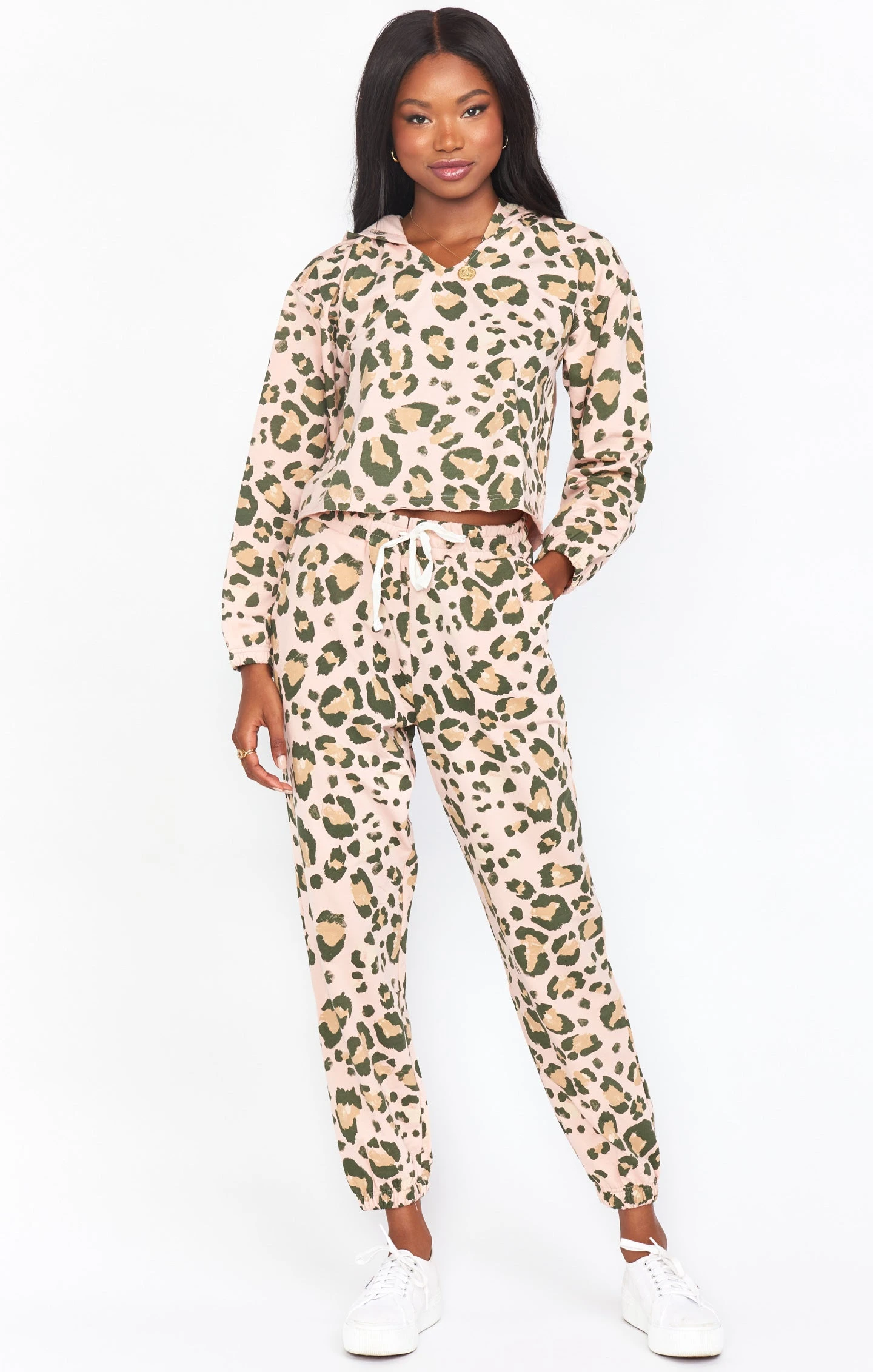 Whether you are wearing her as a set with the matching Huxley pants or with your favorite denim, this easy cheetah hoodie sweatshirt will be your new go-to. She’s a little bit cropped to give you that perfect proportion that is flattering even when you’re in a sweatshirt!