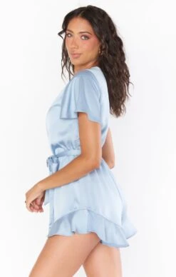 Show Me Your Mumu Say I Do Romper ~ Steel Blue Luxe Satin
