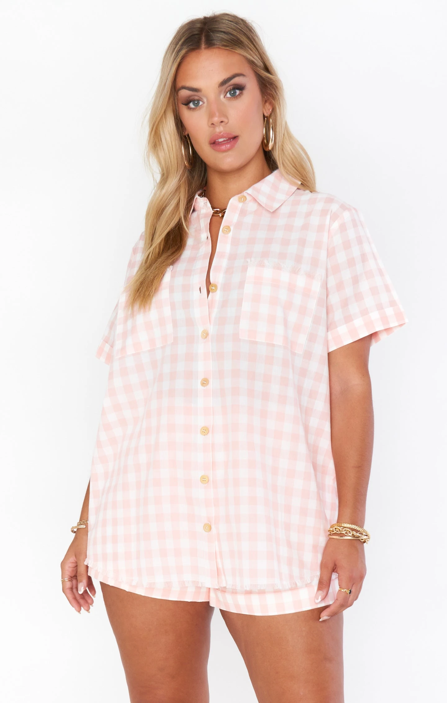 Meet your new summer staple. These adorable gingham linen shorts are the ultimate thanks to the added length, elastic waist band and ample pockets. Pair with the matching Ciao Shirt for the full ensemble, or pair with a body suit and heels for a bit more dressed up look.