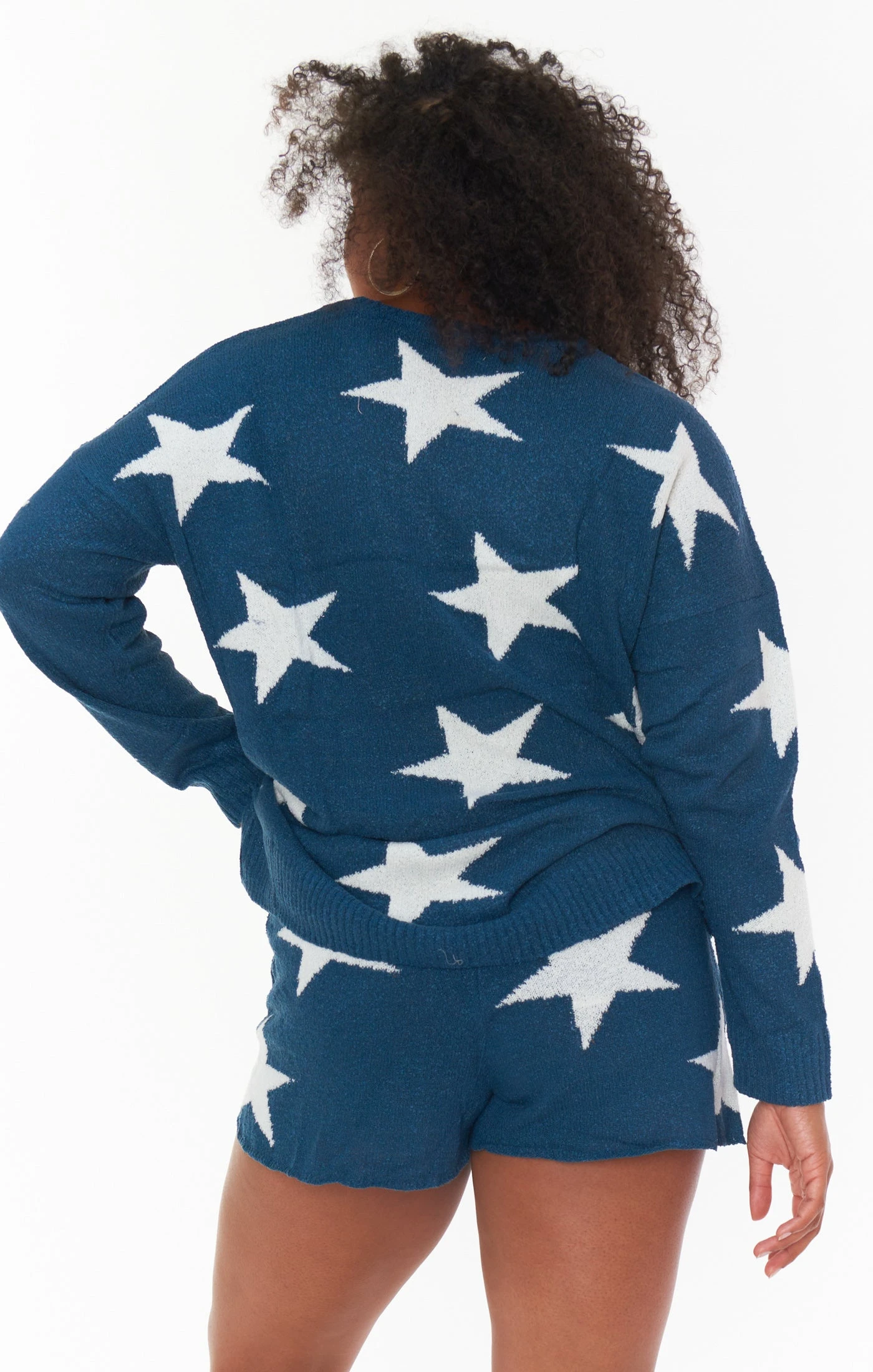 The Bronson is a lightweight star print sweater with a flattering crew neck and oversized silhouette, she has two small slits each side making her easy to tuck into your fave MUMU denim shorts, or throw on with the matching Boardwalk Shorts for a cute set!