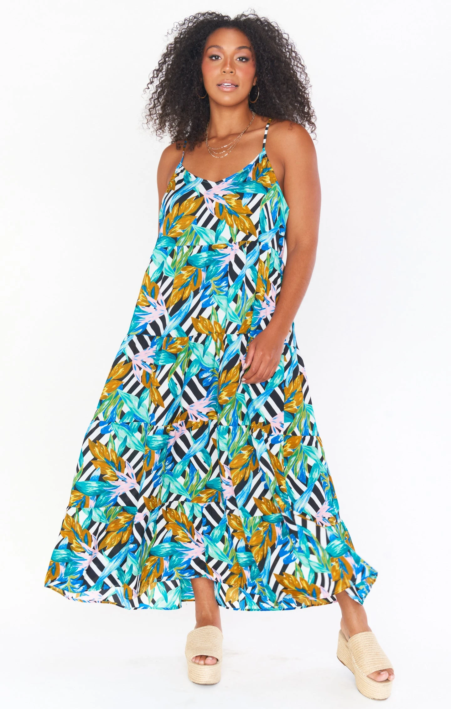 This favorite strappy dress is now in a maxi length! The Caroline Maxi Dress is a vacation must have with her breezy tropical fabric, adjustable straps, and perfectly tiered flow!