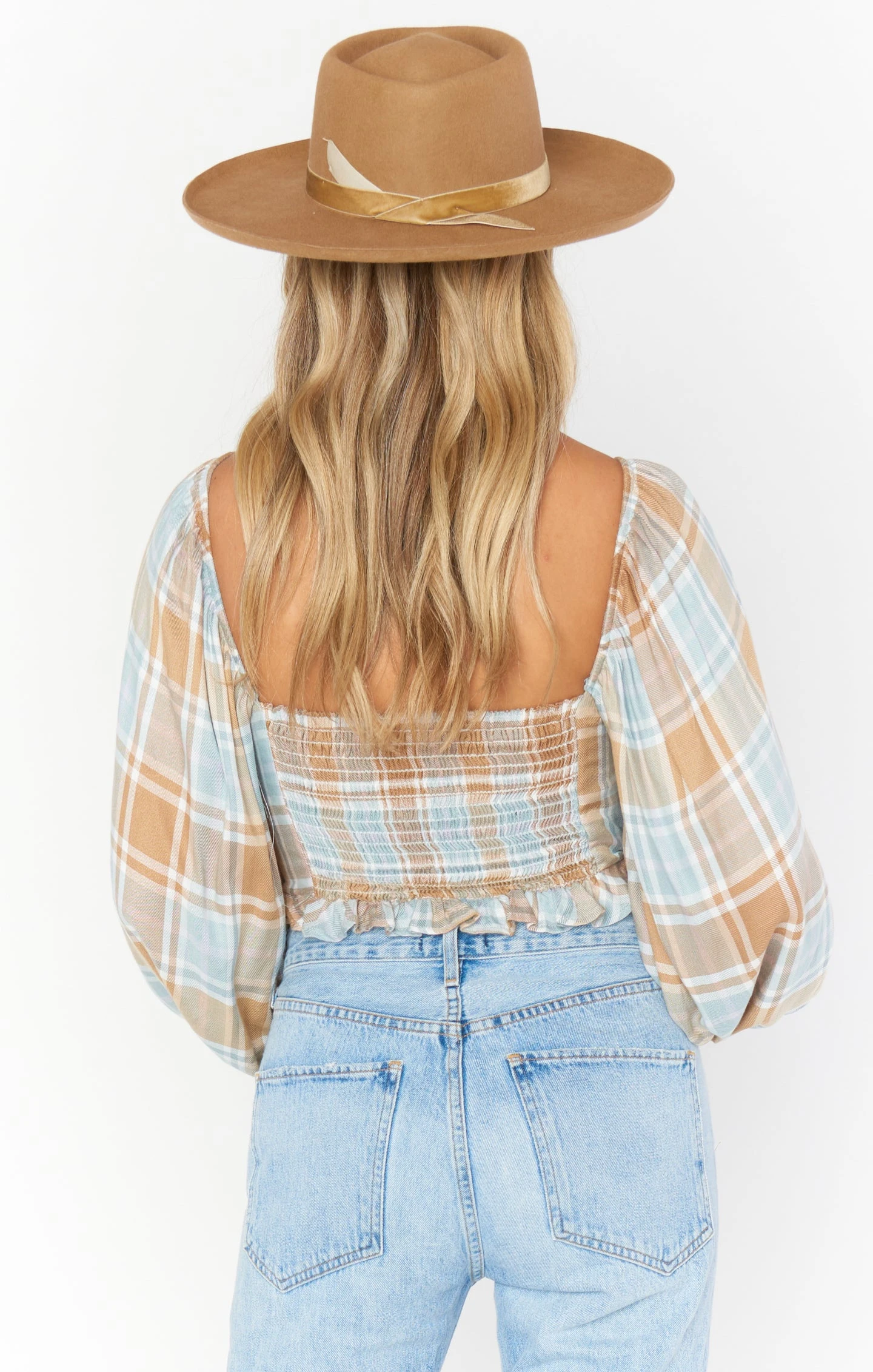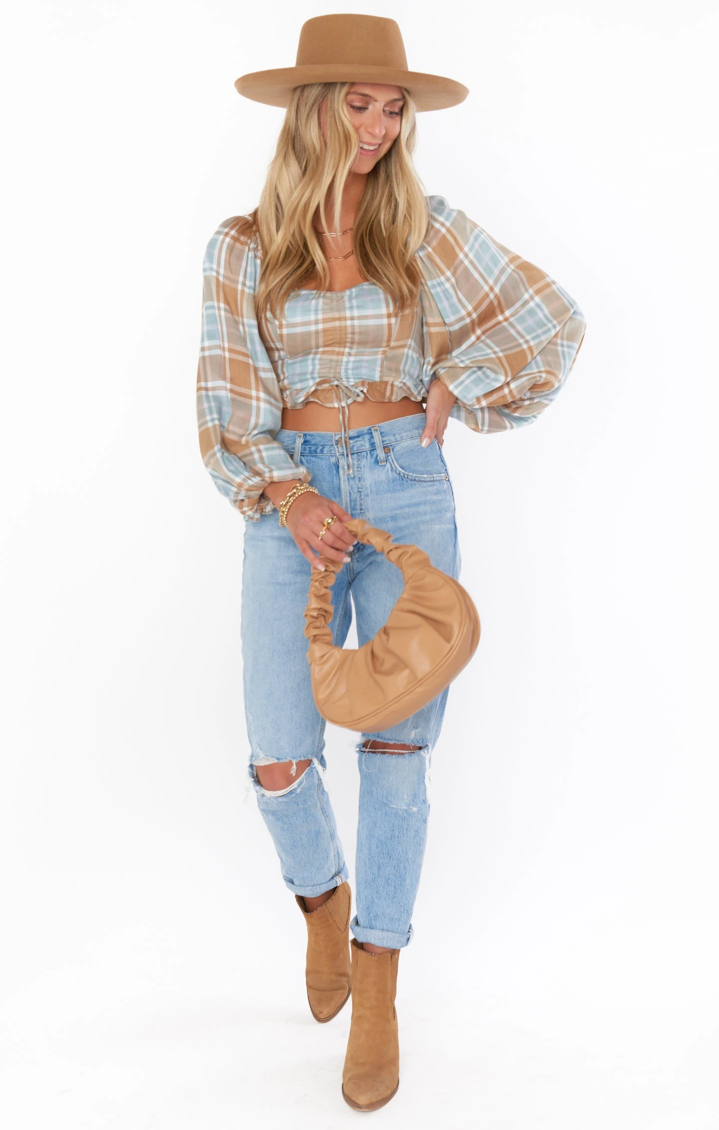 Sunny days are calling, and you need to answer them in this sweet plaid crop top! Adjustable drawstring allows you to customize the amount of skin you want to show. Ruffled trim and poofy sleeves kick this feminine fit up a notch, while a smocked back ensures the perfect fit. Step out in style paired with Mumu denim and your favorite booties.