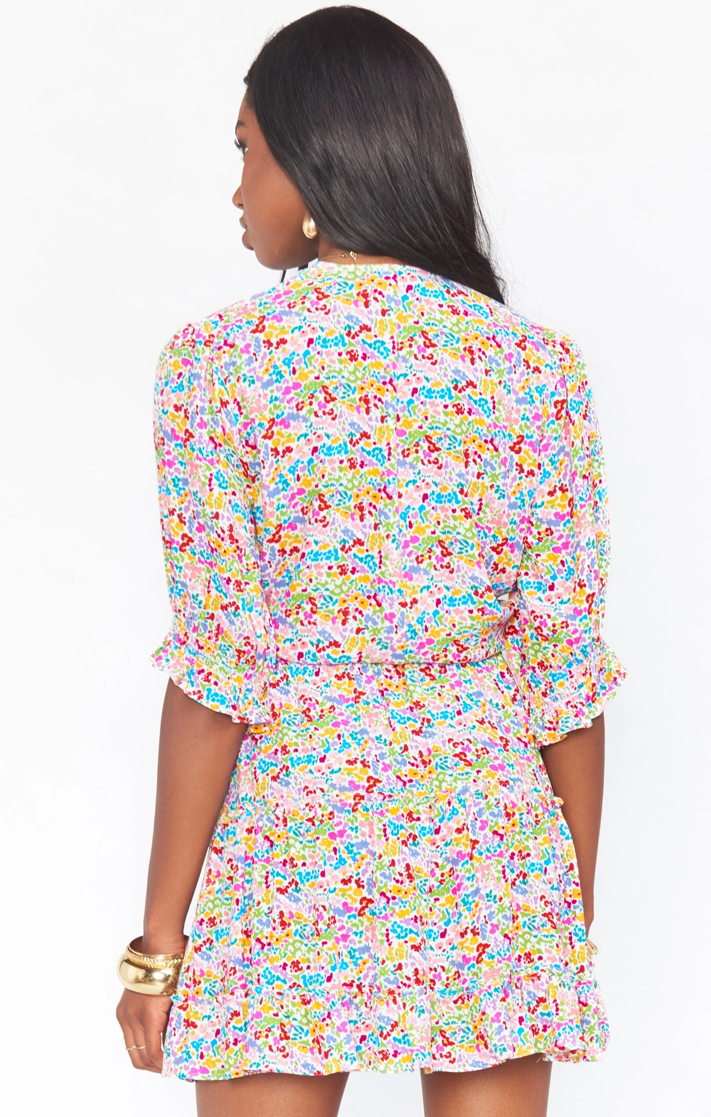 The Kimmy is the perfect light and bright floral tie crop you’ll want to wear all summer long! Her tie front allows you to adjuste her to your desired fit, while her short delicate puff sleeves lend a flirty and fun feel. Pair with denim shorts or her matching Devon Mini Skirt to complete this sweet floral look!