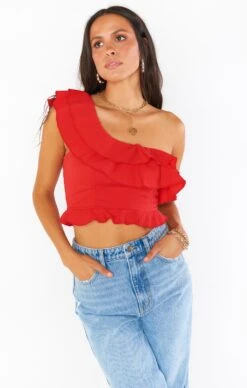 We’ve got a huge crush on the Leni Ruffle Top. Lightweight poplin shapes this lovely cropped blouse that starts with a ruffled one shoulder, asymmetrical neckline and ends at a ruffled hem. Get date night ready by matching with our Liza Ruffle Skirt, or pair with denim for everyday wear.