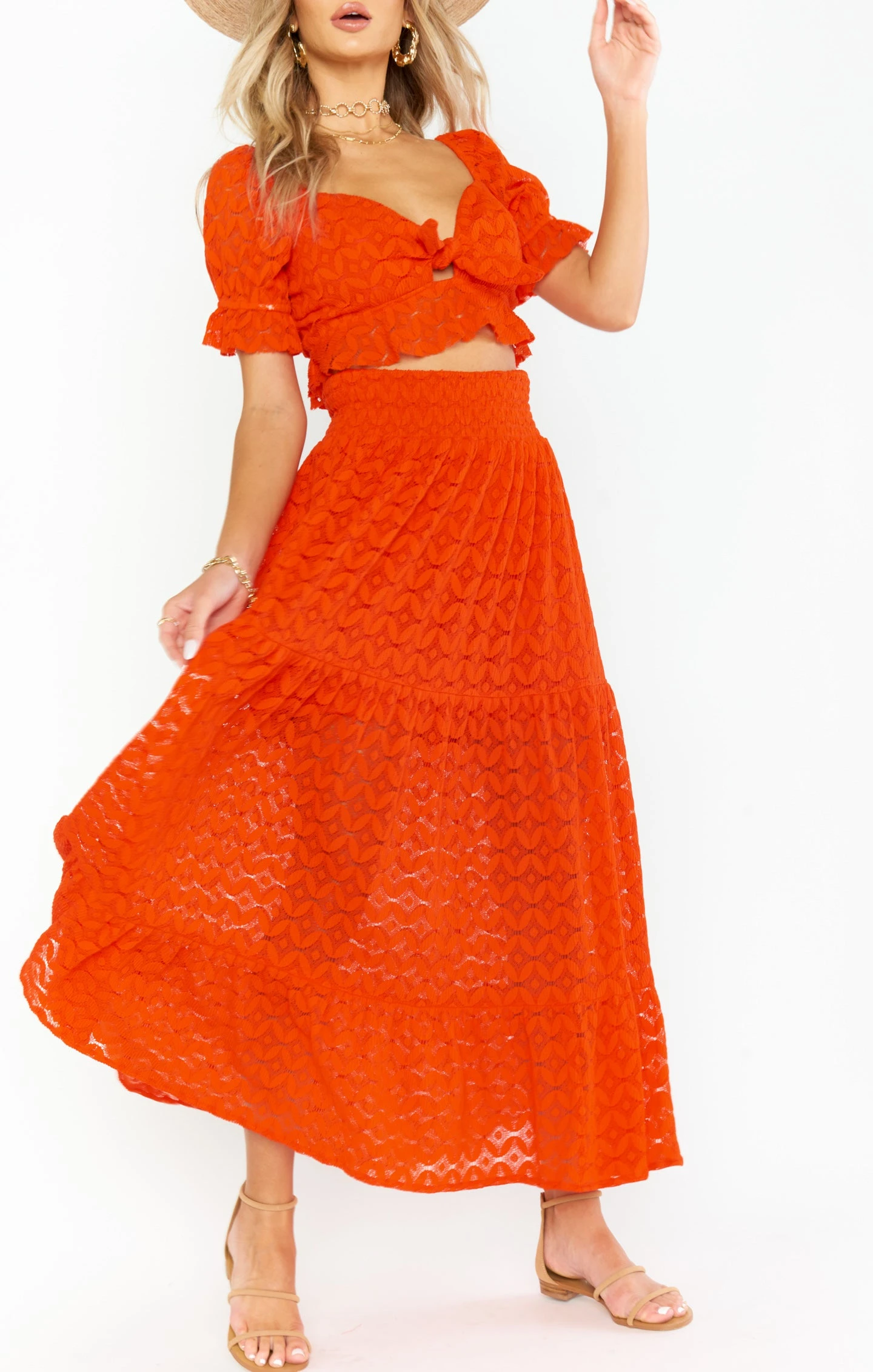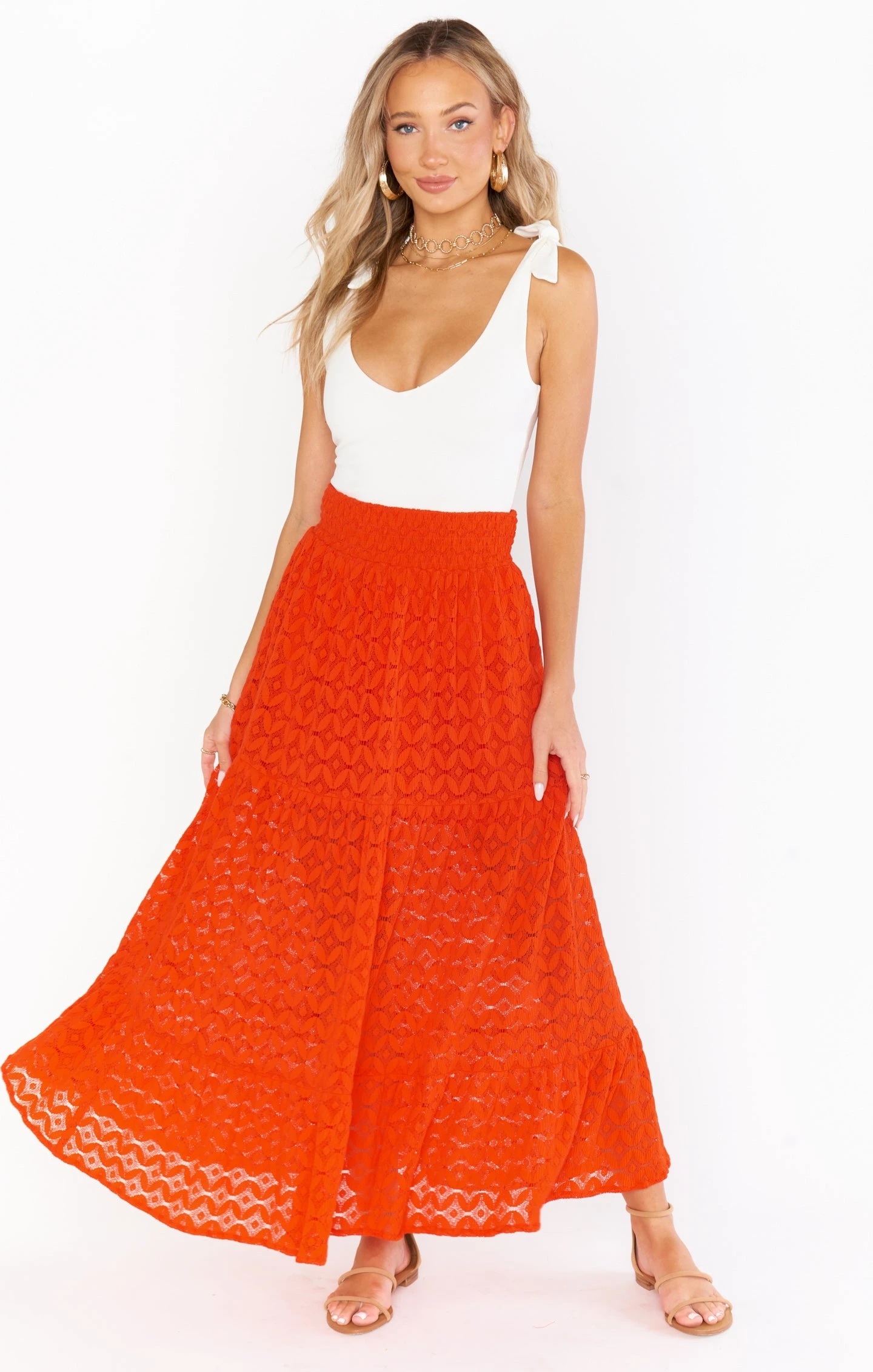 Ready to dance the night away in this fun take on the red maxi skirt. With a comfortable elastic waist band for the perfect fit, with a half length liner for an added twist.