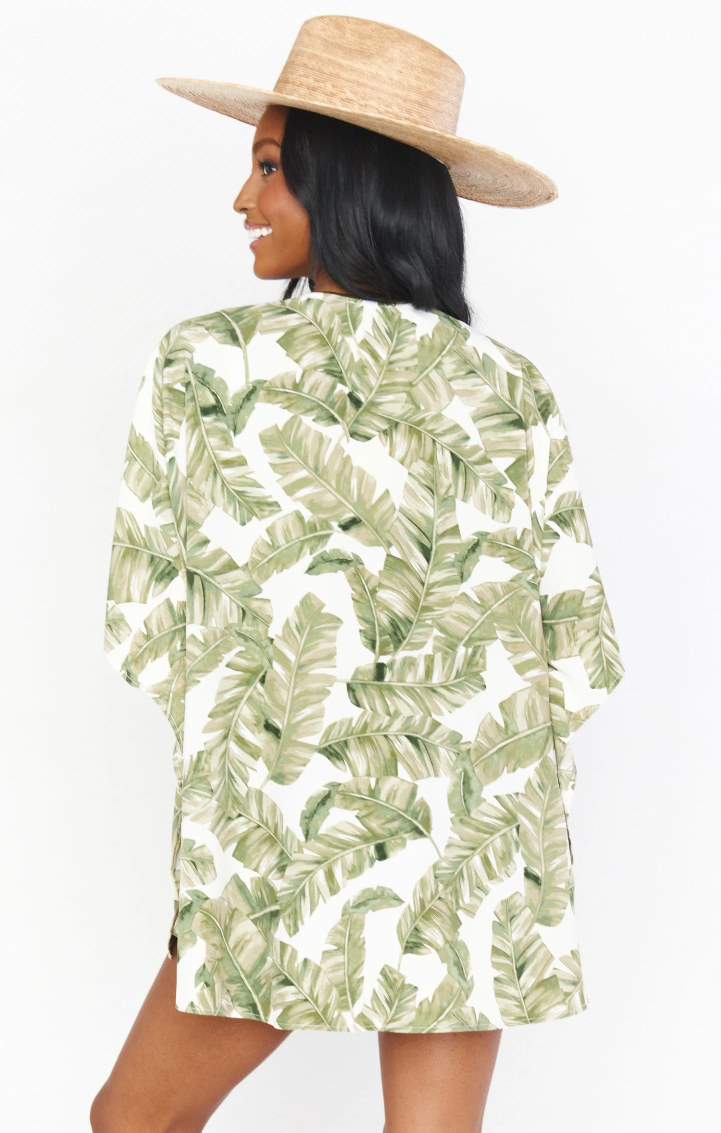 Peta is a Mu classic! This style has been around since the beginning and is a crowd favorite. This easy palm tunic can be thrown over a bikini, but can also be worn with little shorts, leggings, or jeans. Oversized and unbelievably comfy, but so flattering and glamorous all at the same time.