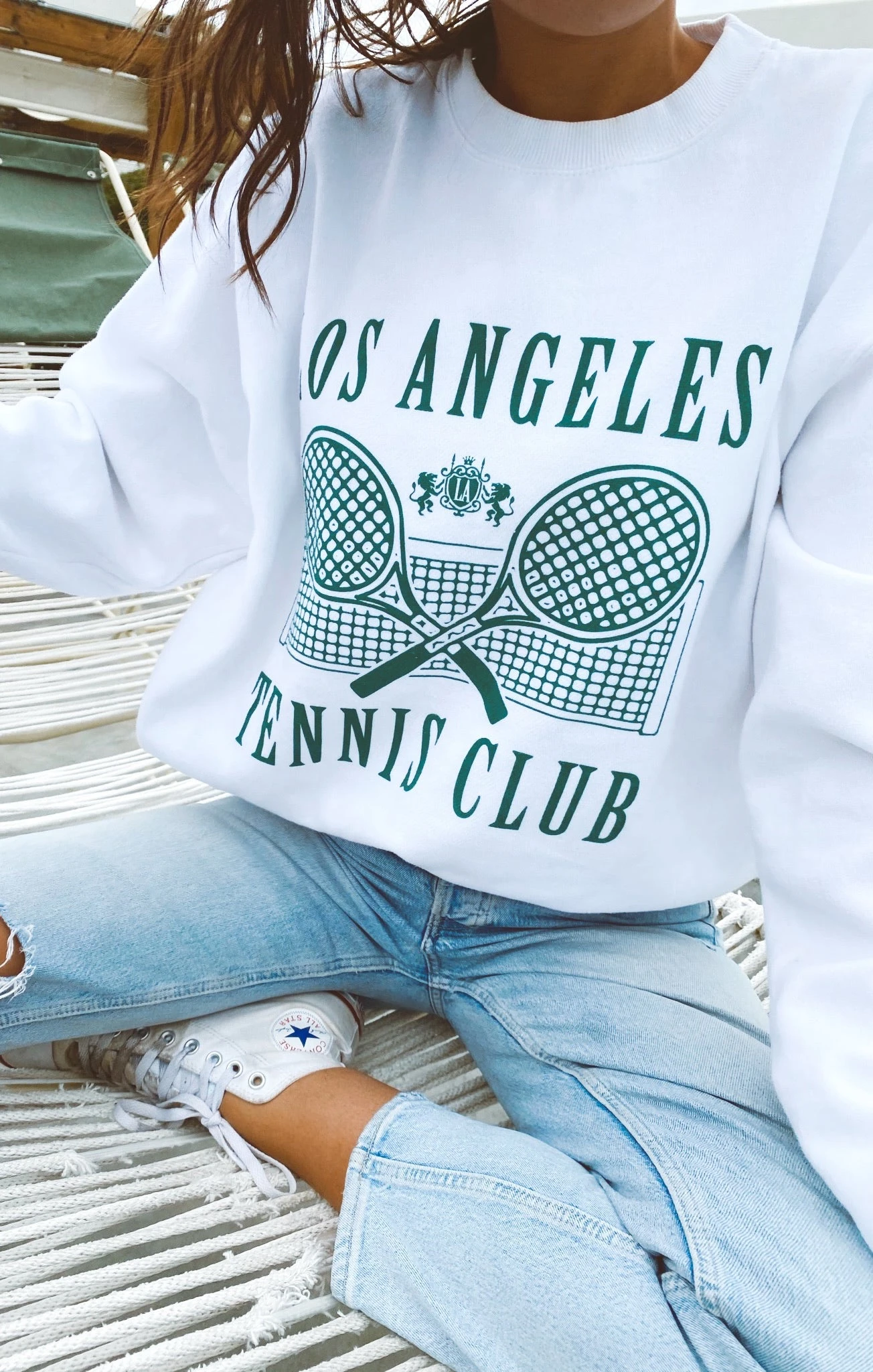 Join the club! We created the perfect comfy white sweatshirt in our classic crewneck cut that you will want to want to wear over and over, not just on the court.