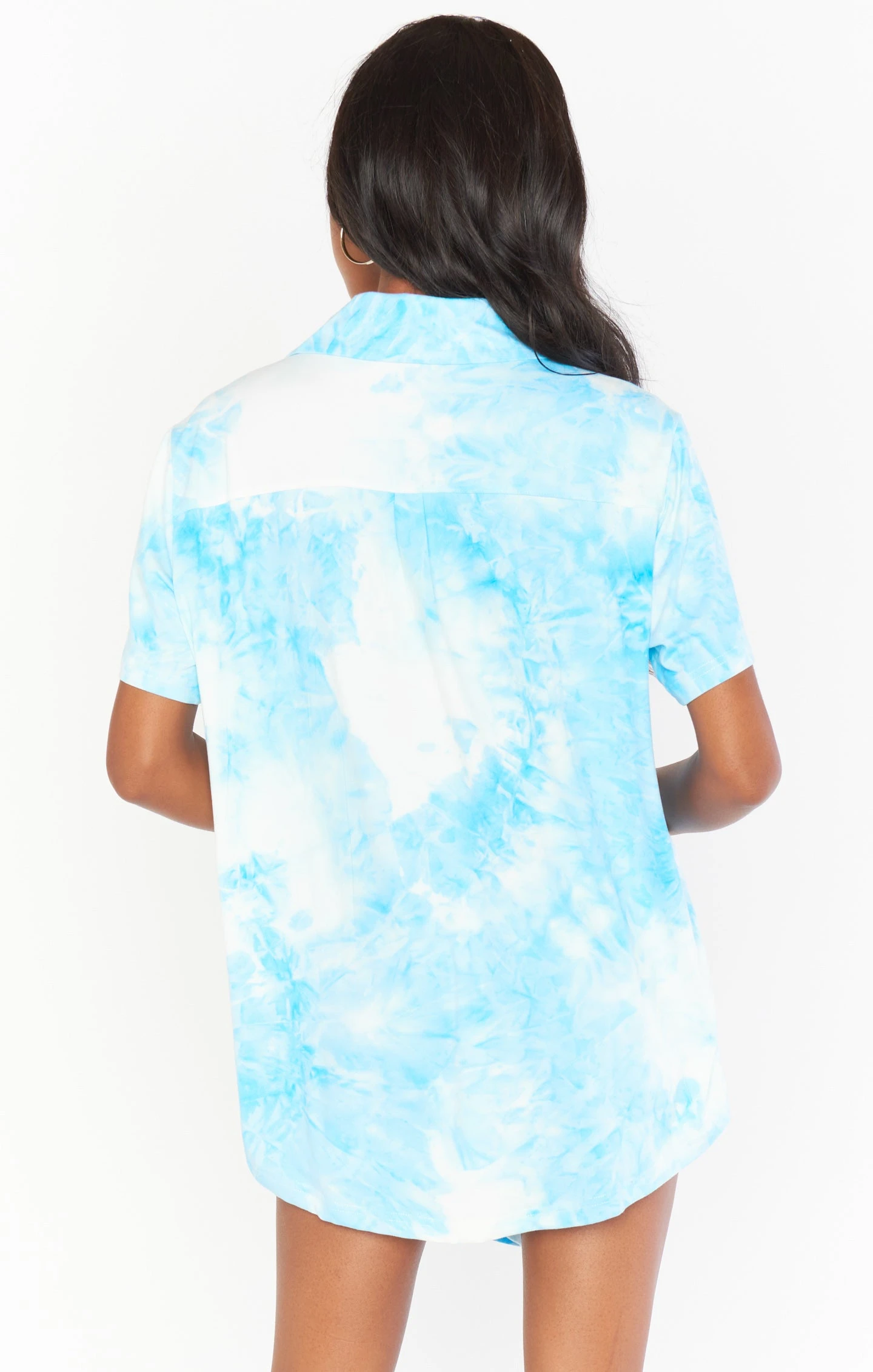Easy like Sunday morning! This tie dye PJ set will make it easy to sleep in all Sunday long! This set has a front pocket, a button down top, and an elastic waist on the shorts! Throw on a pair of your fave slippers and you’ll be ready to snuggle up!