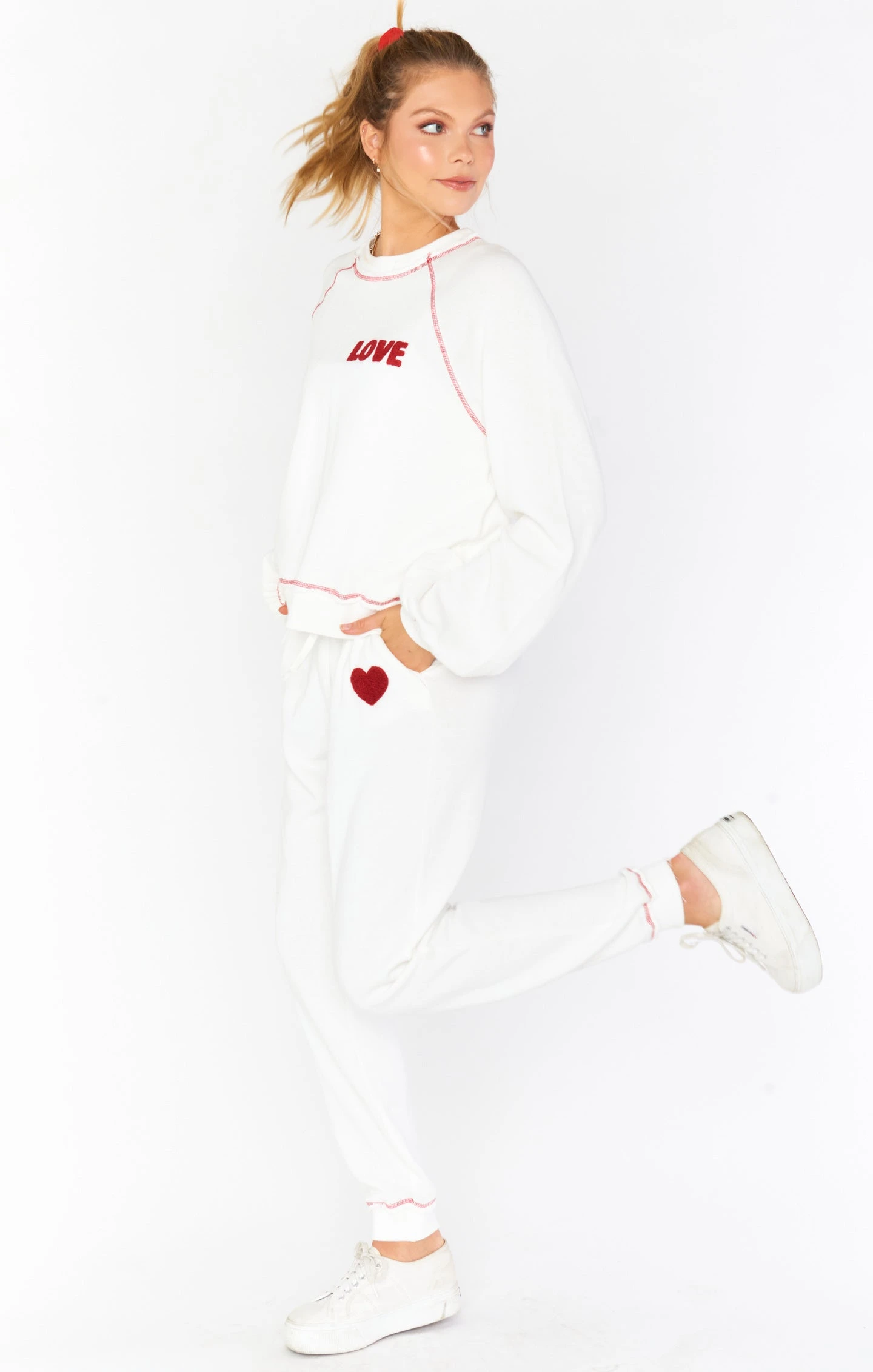 Cozy up and get ready for Cupid’s arrow to strike! Our swipe right sweatpants are made for ultimate comfort with a drawstring elastic waistband, jogger silhouette, pockets and our favorite french terry fabric! Pair with the swipe left sweatshirt for a monochromatic look that will have you swooning!