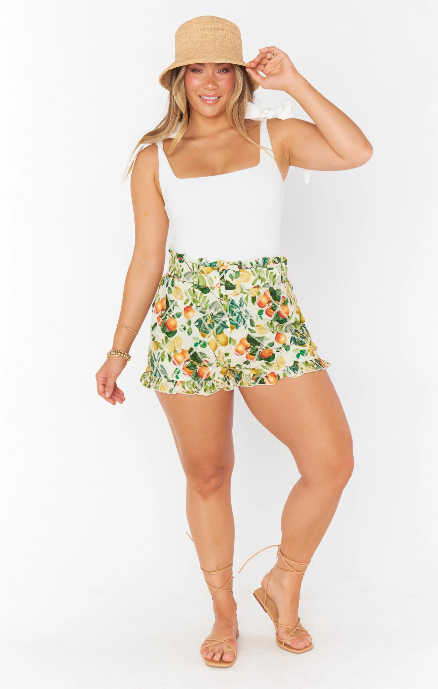 Sunny style in this fresh-squeezed print! The Take Me Away Shorts are a frilly little number with an easy fit and figure flattering belt. A match made in heaven paired with the Take Me Away Top and strappy sandals.