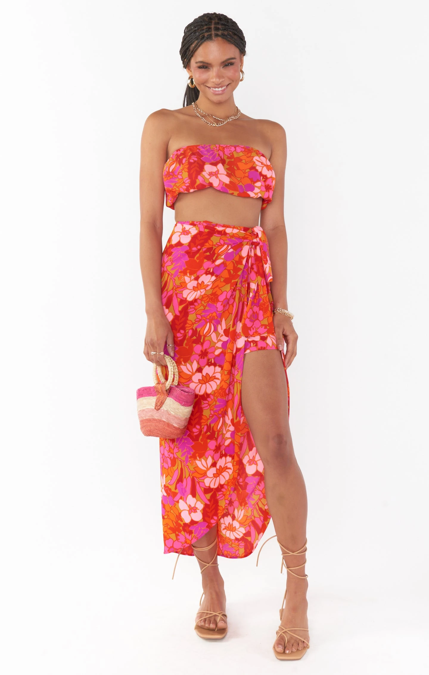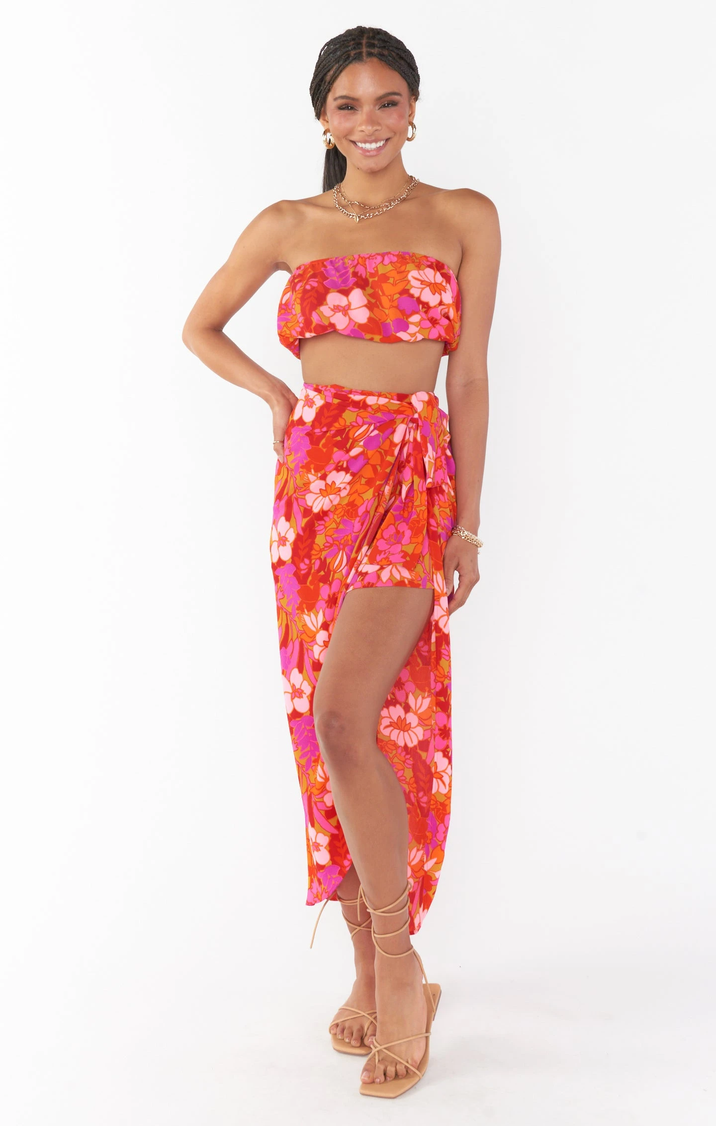 Keep it cute and classic in our Teeny Tube Top. This sleeveless floral top starts at a square neckline and ends with a cropped elastic hem—giving it a breezy, effortless vibe. Get the full vacay look styled with the matching Wrap Me Up Skirt and strappy sandals.